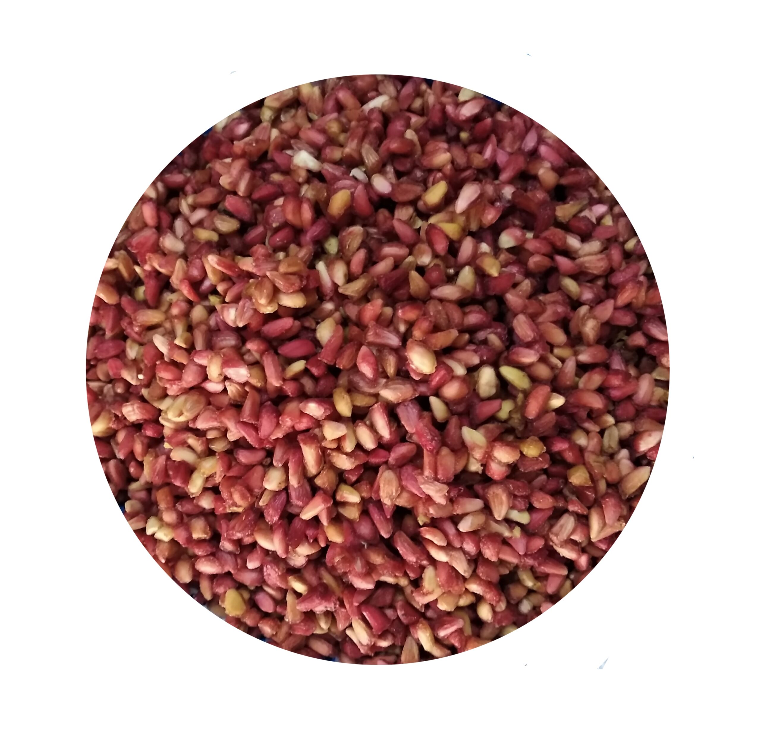 DRIED POMEGRANATE SEEDS: Refers to the “Anardana”. Bits of pomegranate pulp remain on the seeds as they dry, so the slightly sticky seeds with a fruity, mildly sweet and tangy taste are used as a souring agent in Indian cuisine.